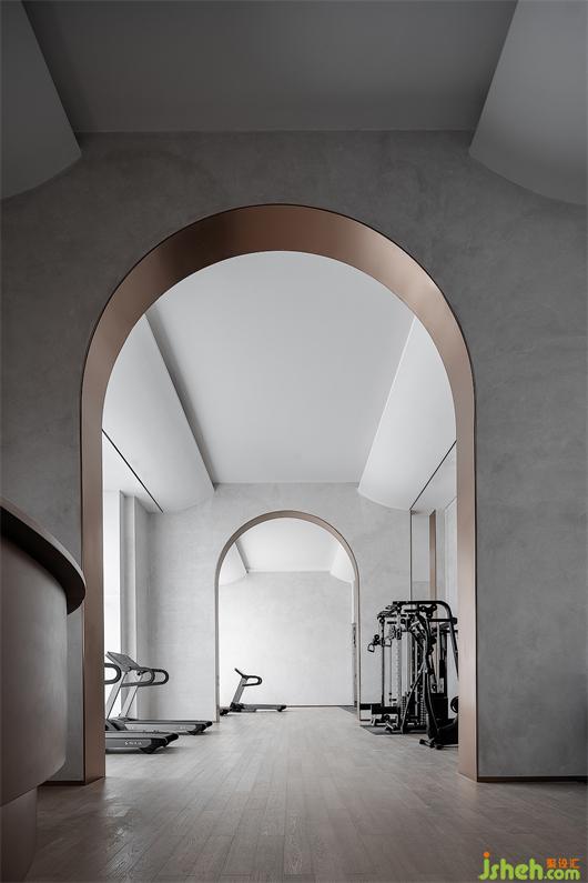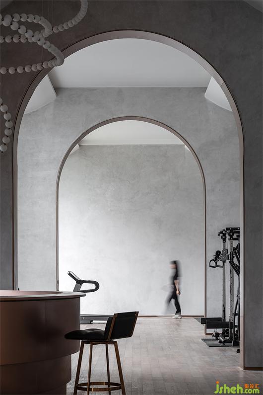空間從半圓形的服務吧臺向兩端延展,創(chuàng)造著靜謐的時間流與能量流。重復的拱門制造著空間的隔斷關系,并在視覺層次的遞進與空間秩序的構建上提供著可能性。