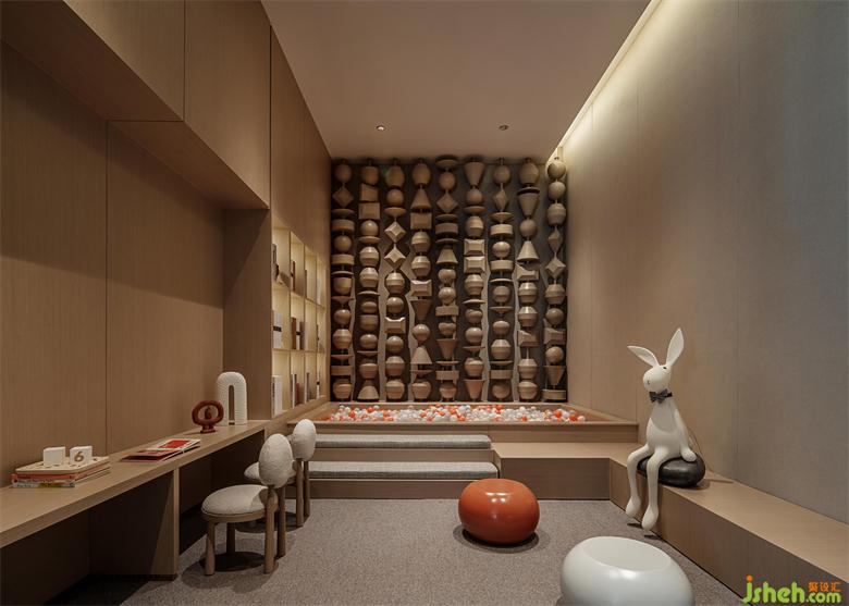 空間所引導(dǎo)的行為和體驗(yàn),較之前場(chǎng)區(qū)域形成了某種情感上的遞進(jìn),而這一部分,由軟裝通過材質(zhì)的對(duì)比、尺度的掌控,予以實(shí)現(xiàn)。