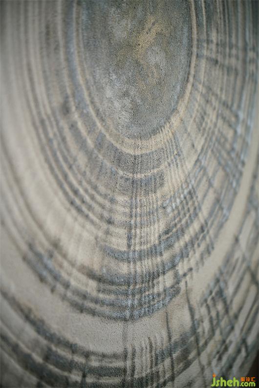 硬裝用調(diào)性、脈絡(luò)走向一致、灰度有差異的石材構(gòu)筑立柱和墻體,其豐富的肌理,恍如被歲月的流水浸潤、沖刷過的樣子,讓冰冷的墻體變得親切、有溫度而可以觸摸。