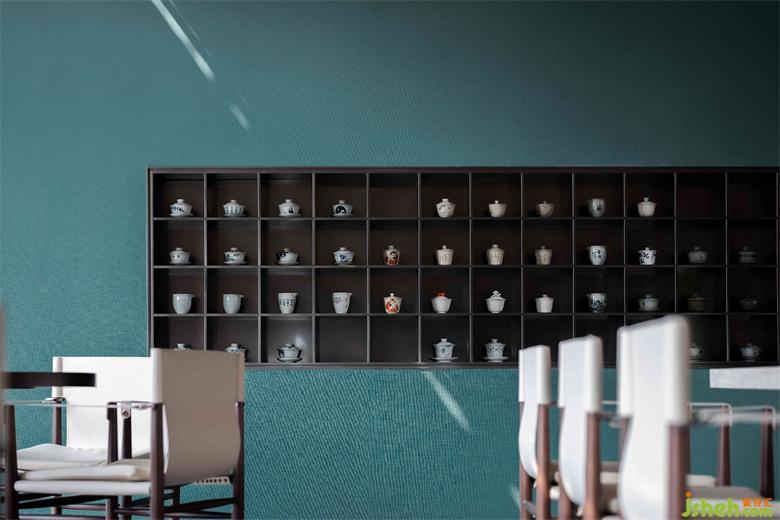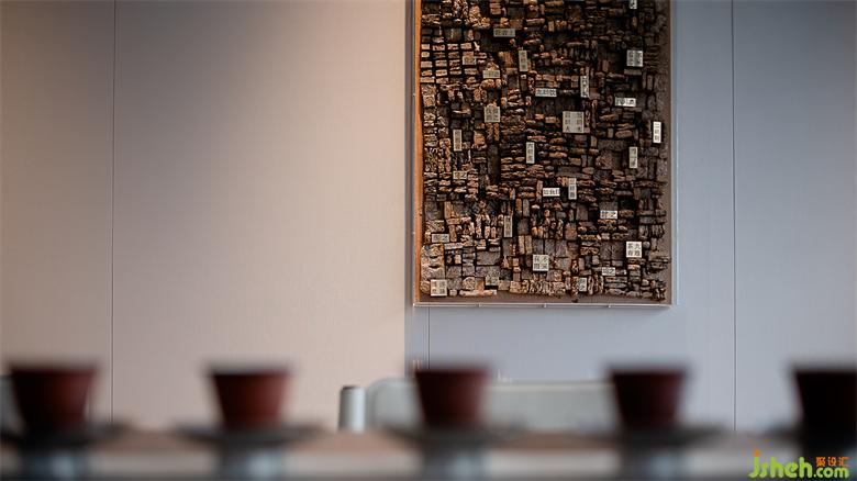 人群之中,自由主義意興闌珊,多是泛泛的交談。茶為人們打開了一個“唯心”的窗口,心外無物,言淺意真。營銷中心設計作為端景的各色茶具展示在洽談區(qū)兩側(cè),日用即道,形而上悟道。雖是先有茶再有茶器,但茶器卻反過來升華了茶。