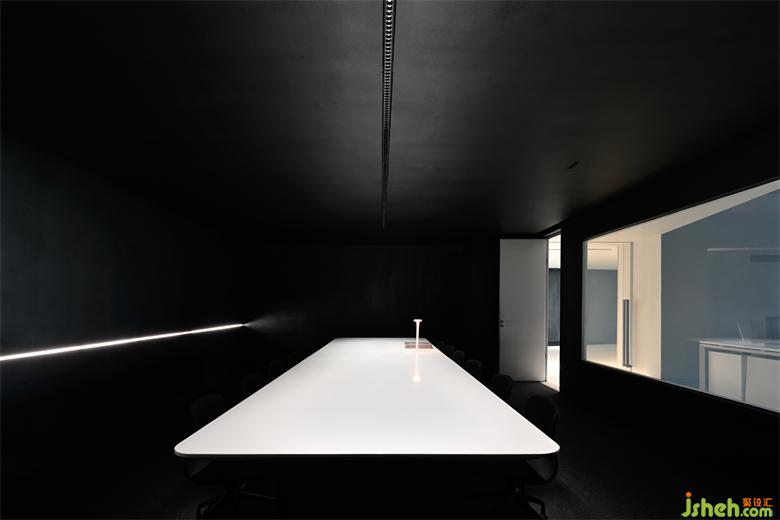 黑色中的大會議室,較之于白色或敞亮的空間,能讓思考不受常規(guī)性的暗示與束縛,更為活躍。在純凈的黑之中,頭腦的風暴似乎總是來得更為強烈些。