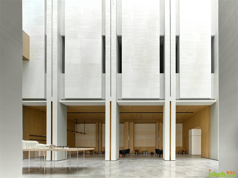 仿佛與繁盛的工業(yè)時代在空間敘事中迭合交織,過去的事物得以再次與未來產(chǎn)生關(guān)聯(lián)。二三層連廊以橋的形式跨過主廳,串聯(lián)起不同的功能空間。