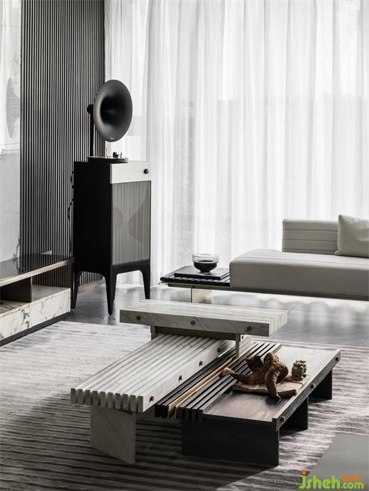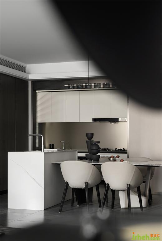 精裝修交付標(biāo)準(zhǔn)樣板間內(nèi),樣板房設(shè)計(jì)以中島臺(tái)為過渡的開放式客餐廳,從視覺上擴(kuò)展了空間的通透性;客廳外側(cè),戶外陽臺(tái)的內(nèi)化處理,提升空間利用率的同時(shí),更進(jìn)一步加深了內(nèi)部空間自由延伸狀態(tài)。