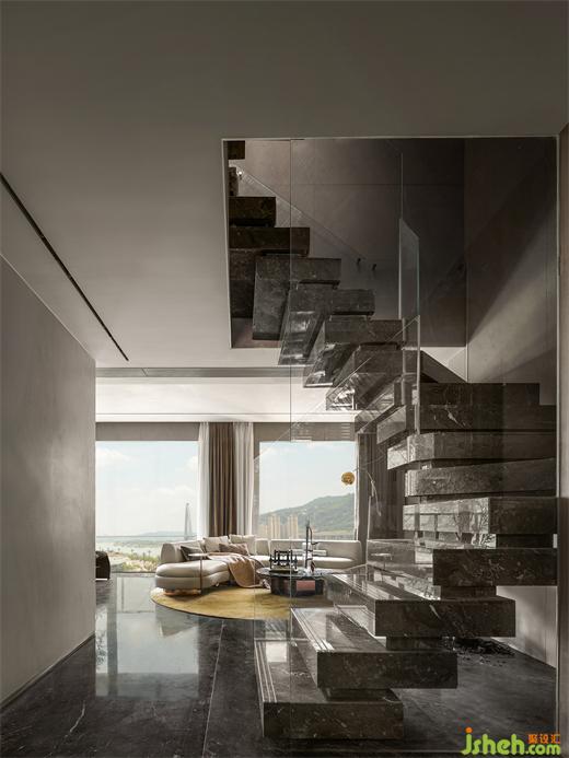 保利閱江臺樣板房設計位于三江交匯處,擁有優(yōu)越的自然森林資源,面向長江,背靠掛弓山森林公園,為未來的城市核心區(qū)。疊拼墅樣板房設計以“生態(tài)健康的居住環(huán)境”為情感紐帶,將對自然的仰止內化于空間之中,采用開放式格局促進空間互容,強調家庭內部關系的融合,并以神秘而有趣的自然之物串起生活的線索。
