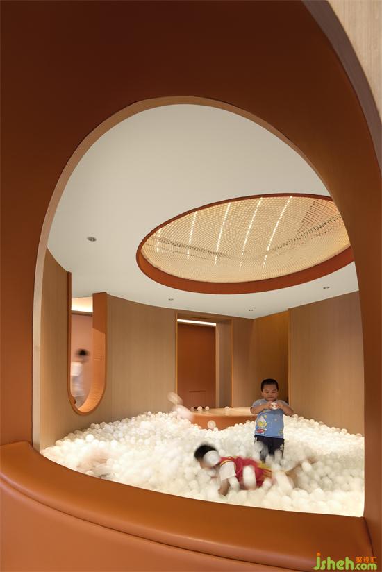 兒童游樂區(qū),是抽象的樹屋,圓形的墻體圍合,鑿出洞口,孩子們從幾個(gè)洞口互相躲藏、觀望,嬉笑鬧之間,一個(gè)新的鄉(xiāng)土記憶也在萌芽。