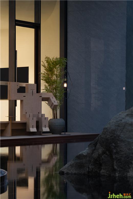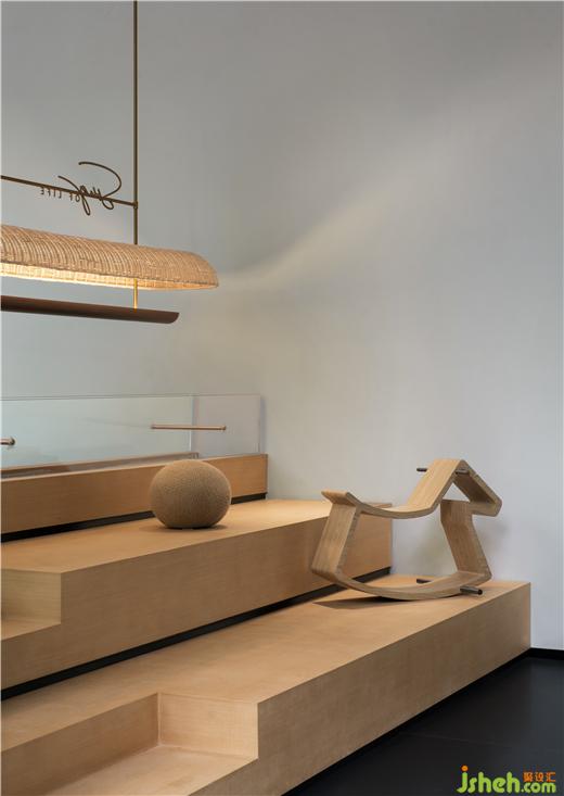 旋轉(zhuǎn)樓梯就像一顆巨大的“綠色心臟”,包裹起中間懸掛的藝術(shù)宮燈裝置,使得核心空間具有垂直向上的動(dòng)勢(shì)。保利成都和頌售樓部設(shè)計(jì)宮燈的設(shè)計(jì)理念源自對(duì)情感、時(shí)間和記憶的梳理。成都銀花絲手工藝及國(guó)遺皮影將時(shí)空壓縮,外層帷幔透紗內(nèi)芯發(fā)光將內(nèi)層民俗匠造的微觀世界展開(kāi),三星堆、都江堰、絲綢之路、宗教信仰、移民匯聚、市井生活、熊貓基地,從古至今逐第呈現(xiàn)。