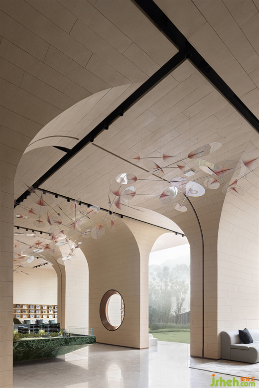 因此在概念上,由生態(tài)環(huán)境進(jìn)行切入,提取出一系列貼切有效的自然元素,并充分結(jié)合原本場(chǎng)地為住宅架空層的原始條件,以“森林會(huì)客廳”為概念、以“林中漫步”為主體場(chǎng)景的售樓部,便成了最精準(zhǔn)的空間意向性表達(dá)。