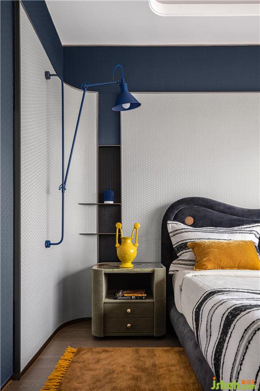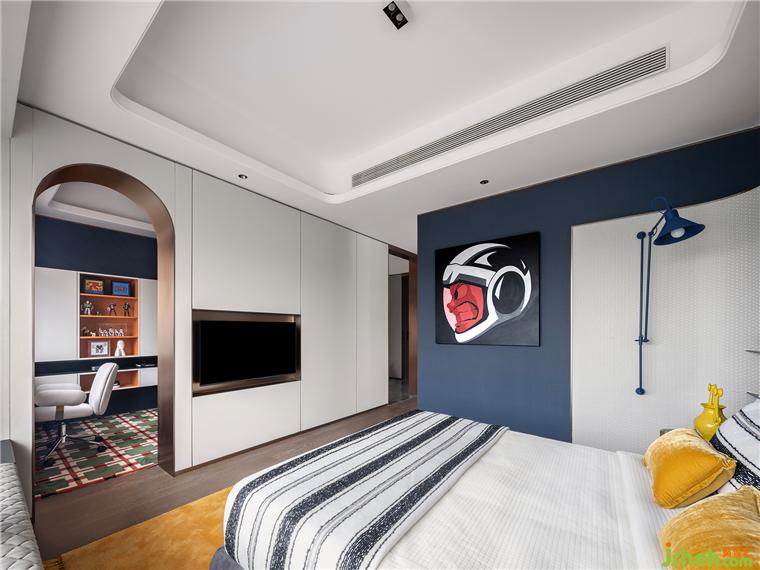 在設(shè)計(jì)上,孩子房創(chuàng)造性地以套房的形式,越秀樣板間設(shè)計(jì)將臥室與學(xué)習(xí)休閑功能區(qū)連通,形成一個(gè)完整的屬于孩子個(gè)人成長(zhǎng)與個(gè)性發(fā)展的獨(dú)立領(lǐng)地。通過(guò)大面積顏色的碰撞,弧形與曲面的局部應(yīng)用,強(qiáng)化著空間內(nèi)部的少年感與潮流氣息。
