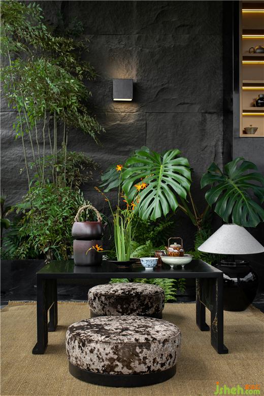 它兼顧茶室的功能,隱秘與質(zhì)樸兼顧,在最大程度上摒棄了物質(zhì)的圍繞,與內(nèi)部空間雜糅的藝術(shù)氣質(zhì)形成一定反差,強(qiáng)調(diào)著對(duì)于內(nèi)在精神的溯源與生活本真的回歸。