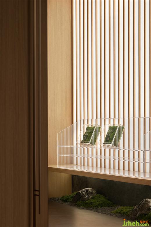 音樂、藝術(shù)書廊、谷物標本、節(jié)氣裝置、建筑與設計模型,以及設計大師椅的入場,以散點置入的方式,構(gòu)建著不同的空間互動可能。而隨著動線深入,木色主導著空間氛圍,使得情緒的舒展得到了溫和的釋放。
