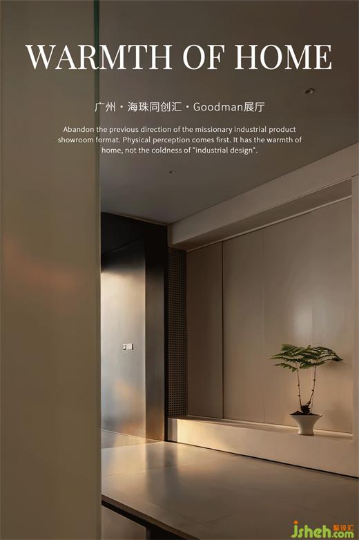 摒棄以往宣教式的工業(yè)產(chǎn)品展廳模式,擺脫“工業(yè)設(shè)計(jì)”的冰冷,展廳設(shè)計(jì)以“注重身體感知為首位”作為設(shè)計(jì)核心,位于廣州海珠同創(chuàng)匯的美國(guó)Goodman全空氣系統(tǒng)品牌展廳被賦予了家的溫暖,賓至如歸。