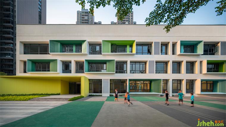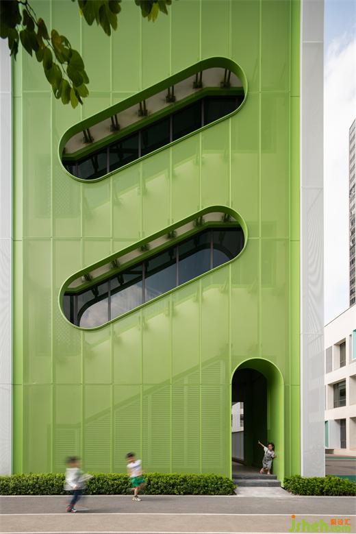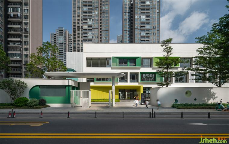 本案幼兒園設(shè)計(jì)位于廣東佛山時(shí)代創(chuàng)客小鎮(zhèn),是一個(gè)針對(duì)原有建筑外立面而展開的幼兒園外觀改造項(xiàng)目。