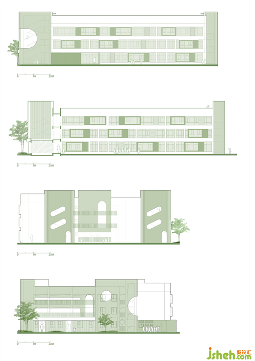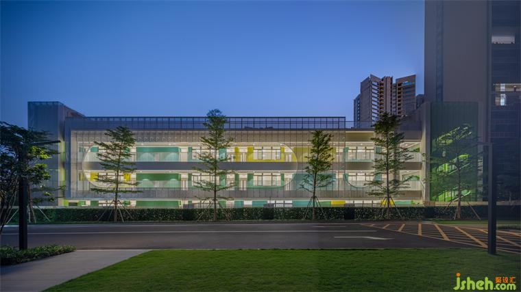 低飽和的綠色、藍(lán)色與黃色,則為大面積的莫蘭迪灰?guī)砀泄偕咸S,形成一種的清新明快、富有生機(jī)的氛圍。此時,整個建筑不再是一種單調(diào)均質(zhì)的形式,而是解構(gòu)成一系列色彩的組合,有效地弱化了建筑的體量感,激活場所個性。