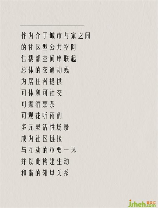 與此同時(shí),作為介于城市與家之間的社區(qū)型公共空間,售樓部空間串聯(lián)起總體的交通動(dòng)線,為居住者提供可休憩、可社交、可煮酒烹茶、可觀花聽雨的多元靈活性場景,成為社區(qū)鏈接與互動(dòng)的重要一環(huán),并以此構(gòu)建生動(dòng)、和諧的鄰里關(guān)系。