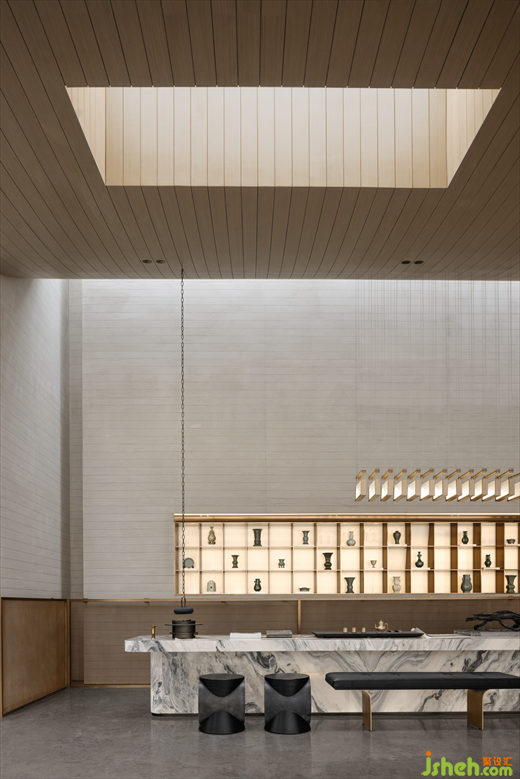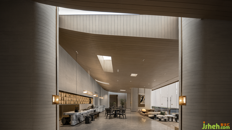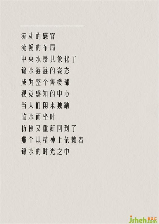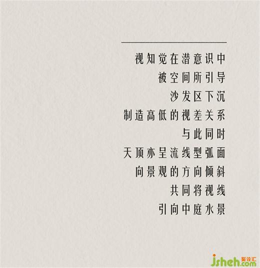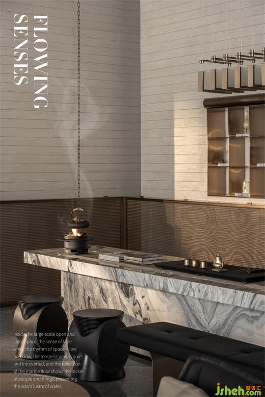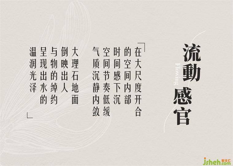 流動的感官,流暢的布局。中央水景具象化了錦水漣漣的姿態(tài),成為整個售樓部視覺感知的中心。當人們閑來獨踽、臨水而坐時,仿佛又重新回到了那個從精神上依賴著錦水的時光之中。