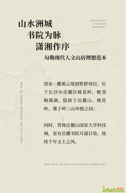 深業(yè)·麓溪云境別墅群項(xiàng)目,位于長(zhǎng)沙市岳麓區(qū)桃花嶺,毗鄰梅溪湖,隱匿于岳麓山、桃花嶺、寨子嶺三山環(huán)抱之間;同時(shí),背倚岳麓山國(guó)家大學(xué)科技城,下疊別墅設(shè)計(jì)更有岳麓書院耳濡目染,接續(xù)千年文士之風(fēng)。