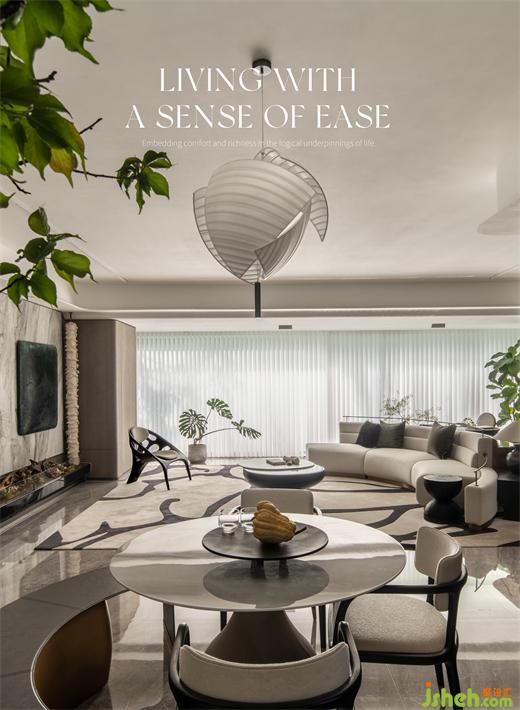 樣板間設(shè)計(jì)將原有的封閉式廚房打開(kāi),延展整個(gè)客餐廳在視覺(jué)上的縱深關(guān)系,形成一個(gè)延續(xù)性整體,并在區(qū)域功能的逐漸變化中,產(chǎn)生一種由緊向松疏導(dǎo)的空間秩序。