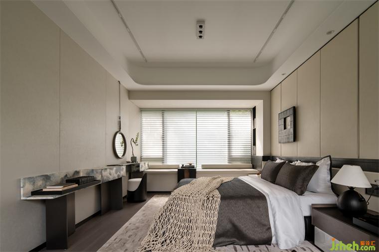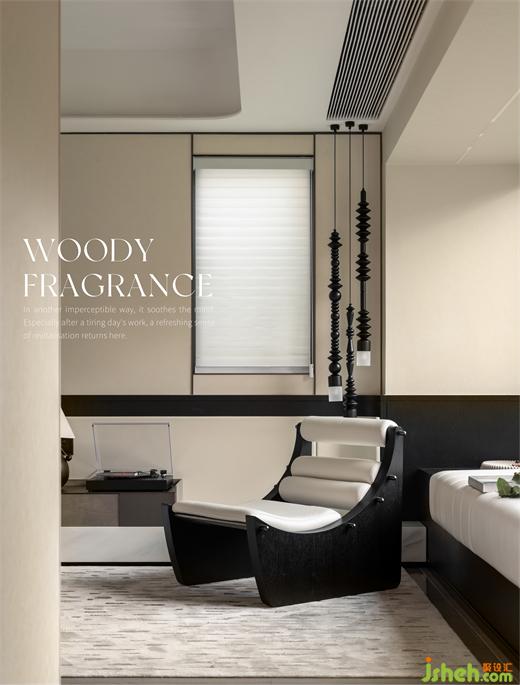 主臥的氣質(zhì)謙遜而優(yōu)雅,當(dāng)代的極簡(jiǎn)線(xiàn)條里,隱隱透露出幾許復(fù)古的藝術(shù)趣味。木質(zhì)調(diào)的芬芳,以另一種不易察覺(jué)的方式,安撫著駁雜的心緒。尤其在結(jié)束一日的疲勞工作后,一種沁入心脾的復(fù)蘇感在這里得到回應(yīng)。