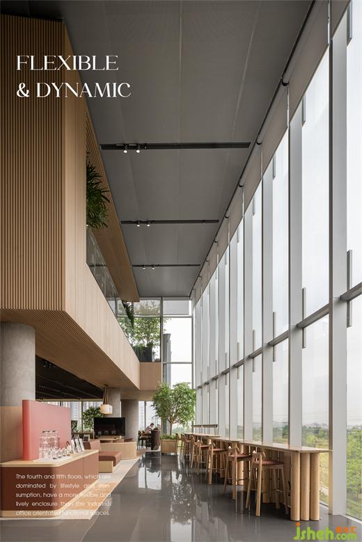 在首層至三層的空間當中,會所設計公共空間的配置鼓勵開放性和靈活性,促進社群自然交流和互動。通過設計靈活的共享工作空間和多功能設施,支持不同背景的產(chǎn)業(yè)體和個人之間的協(xié)作與交流。