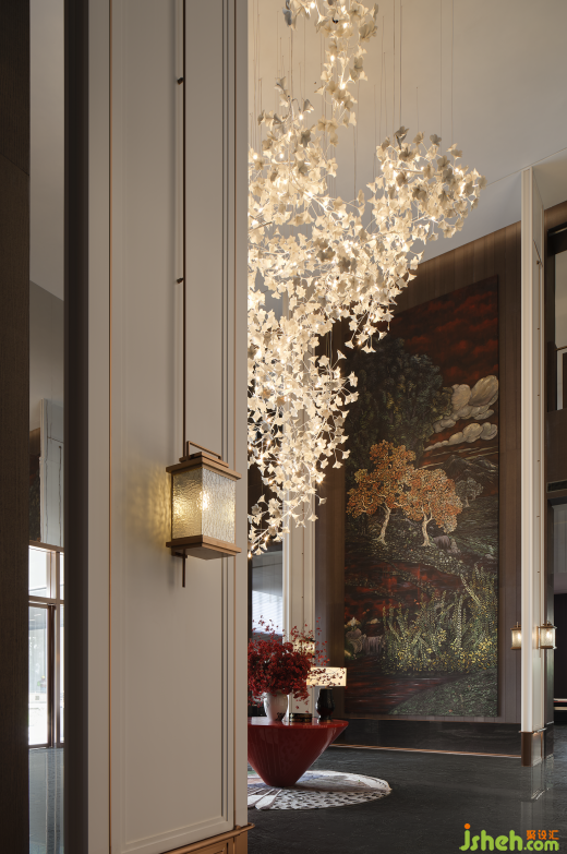 深業(yè)萬林華府位于惠州市惠城區(qū),項(xiàng)目地?fù)頂垉纱笊鷳B(tài)景區(qū)——紅花湖和惠州西湖。湖山環(huán)伺,靜謐悠遠(yuǎn),在城市與自然之間孕育出獨(dú)特的氣質(zhì)。循著這份氣韻,共生形態(tài)將瓷器作為靈感融入項(xiàng)目會(huì)所硬裝設(shè)計(jì)。