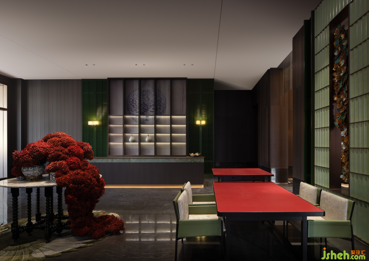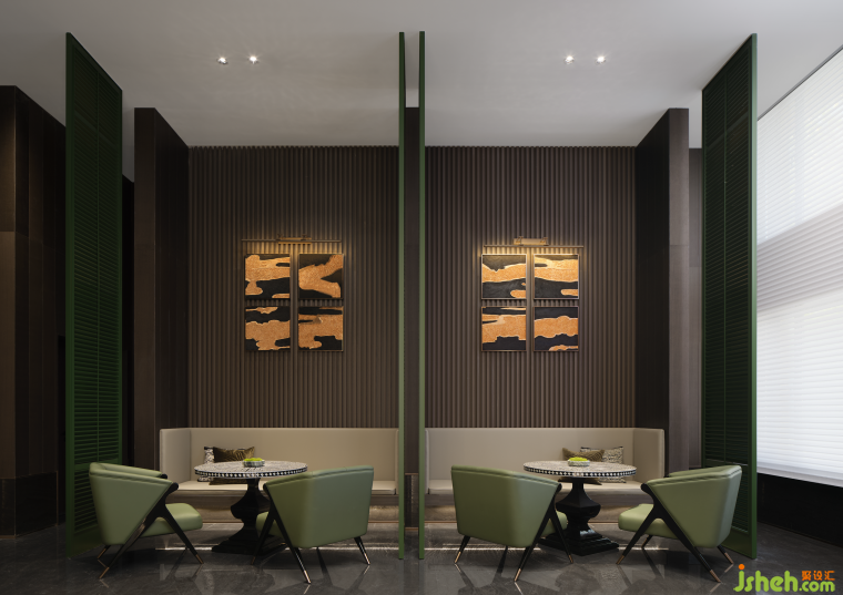 東方美學(xué)中“收放自如”的意趣,以其微妙的平衡讓人著迷。簽約區(qū)收縮的空間尺度,無形中拉近了人與環(huán)境的距離,使原本開闊的氛圍過渡到一種更為私密、內(nèi)斂的場域。這種空間感知上的變化,使得人與空間、人與人之間的互動(dòng)更加緊密而富有溫度。