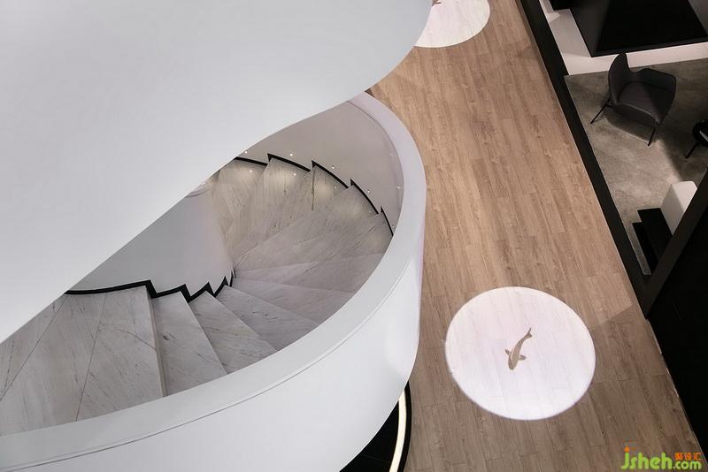 設(shè)計(jì)師在考慮方案時(shí),設(shè)計(jì)的立足點(diǎn)并非僅僅在室內(nèi)部分,而是將由外而內(nèi)作為一個(gè)綜合的感受過(guò)程。并以此將其分析成感受的兩個(gè)部分:“情景”和“情境”。“情景”是看的過(guò)程,與嗅聽一樣,是最初步的感受。因此在方案中,室內(nèi)設(shè)計(jì)師將外立面以櫥窗的概念,將室內(nèi)的部分不動(dòng)聲色的對(duì)外作鏈狀的形態(tài)展示。而進(jìn)入到室內(nèi)之后,則是將“情景”轉(zhuǎn)化到了“情境”,是由起初的“看”到置身其中的體驗(yàn)過(guò)程。
