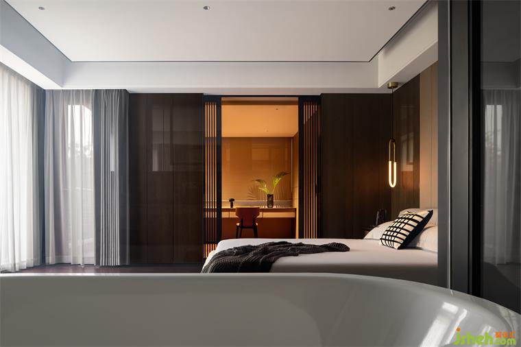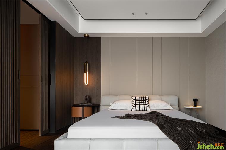 臥室空間延續(xù)了富有質(zhì)感的顏色與雅致大氣的灰色調(diào),背景墻面以簡(jiǎn)潔干練的線條代替了繁復(fù)的裝飾,別墅裝修設(shè)計(jì)濃縮為現(xiàn)代、沉穩(wěn)的設(shè)計(jì)語言。