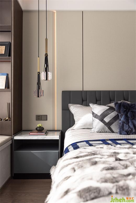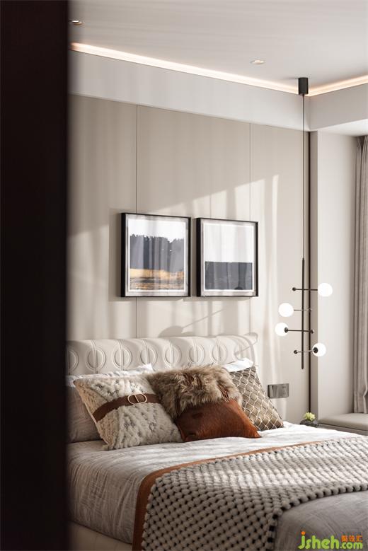主臥室以溫馨而柔軟的灰白色調(diào)為基底,與細(xì)節(jié)陳設(shè)相得益彰,面對(duì)生活,松弛或精細(xì),是另一種平衡的哲學(xué)。售樓處設(shè)計(jì)床頭柔軟的靠背和垂掛而下慵懶的側(cè)燈,私密空間產(chǎn)生的呼吸感都隱藏在無(wú)聲的細(xì)節(jié)中。