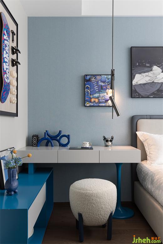 兒童房則以更為明快和活潑的色彩勾勒,充滿活力的藍(lán)色調(diào)和溫暖的木紋裝飾,激發(fā)了空間的生機(jī)和孩子的想象力。
