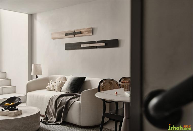 人的居家活動(dòng)是復(fù)合且多重的,所以在設(shè)計(jì)中需要?jiǎng)?chuàng)造更多“聚焦點(diǎn)”,讓人們?cè)谌粘V胁煌5那袚Q角色。因此,在滿足社交空間之外,心靈庇護(hù)的精神場(chǎng)域成為都市人的生活必備.一張舒適的沙發(fā),粗糙親膚的毛毯,就能讓起居空間的“治愈力”拉滿.