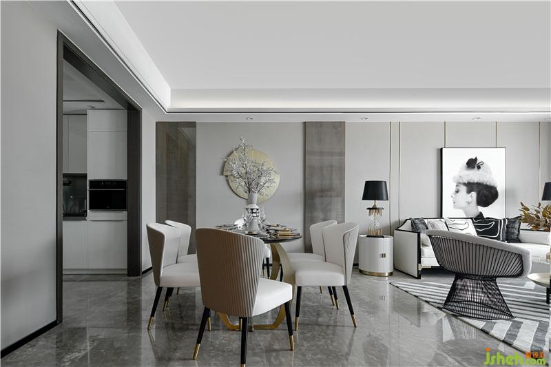 樣板間緊靠珠江,從樣板房的窗外望去,江對岸就是澳門。由于地理位置特殊,因此在思考這次的珠海裝修設計軟裝設計方向時,設計師希望室內(nèi)的窗戶不是唯一的室內(nèi)外聯(lián)結(jié),這種聯(lián)結(jié)可以人為地再次被加深,并以此加深內(nèi)外空間從地理到精神上的關系。設計師受到珠江江水波紋形態(tài)的啟發(fā),把波紋中的線條形態(tài)提取出來,珠海裝修設計運用到內(nèi)部空間中,線條從內(nèi)部蔓延到的外部,所以線條的運用是此次設計的重點。