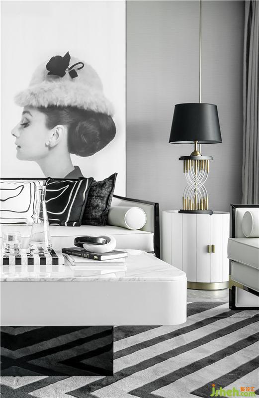 線條的排列方式從分布不均勻的形態(tài)到緊密有序地排列分布,每一種形式都會帶給空間使用者不同地感受??紤]到在同樣的形式下,在方正地空間中,小體量帶來的不確定性和大體量傳遞的穩(wěn)定感,設計師把水波一樣的分布不均勻的線條形態(tài)留給小體量的物體,以期為空間增添水波一樣地動態(tài)地感受,而讓具有均勻分布線條的大體量家具加強空間中的穩(wěn)定感。