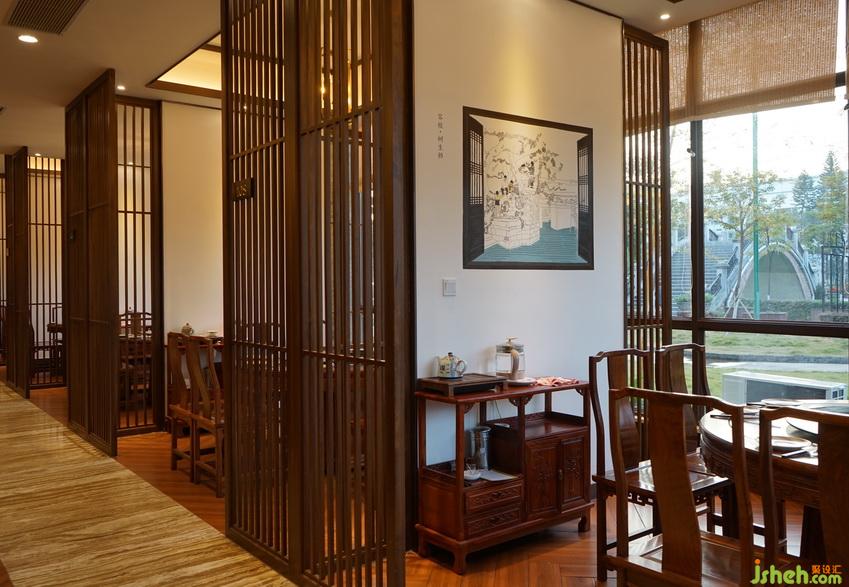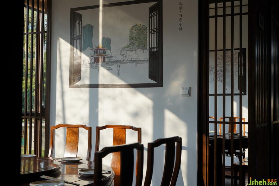 室內(nèi)設(shè)計師設(shè)計之初,設(shè)計師為本私房菜館的設(shè)計營造了一個背景:故事的主人公是一位成功的從事飲食的食家,事業(yè)有成,從國外重歸故里一一一順德陳村,其傳承了順德飲食文化的精髓,又屢有創(chuàng)新。對順德美食有很高的造詣。同時,他也是一位有非常高的人文素養(yǎng)及情懷的生活家,有很高的生活品味,對傳統(tǒng)文化、鄉(xiāng)土人文有很深的理解與感情。因其身歷中西文化的差異,所以能理解中西文化的交融,融匯古今,并以發(fā)展與傳承的眼光看待傳統(tǒng)與當(dāng)代,這就是本設(shè)計的初衷與背景。設(shè)計師強(qiáng)調(diào)將周圍的綠意景觀和迷人光影引入室內(nèi),并與當(dāng)代表達(dá)的傳統(tǒng)人文元素融合,讓遠(yuǎn)道而來的食客從自然的光影、綠意、傳統(tǒng)、鄉(xiāng)土的當(dāng)代元素所營造的環(huán)境氛圍當(dāng)中,品嘗順德美食的迷人魅力。