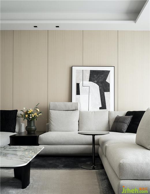 客廳里的沙發(fā)與茶幾均來自于著名品牌Minotti,其設(shè)計有著優(yōu)雅而又現(xiàn)代的巴黎裝飾風(fēng)格:豪宅設(shè)計純粹的設(shè)計、精致的材料、無可挑剔的做工、以及一絲不茍的細(xì)節(jié)創(chuàng)造出美妙的平衡感。這一切特性正與本案的風(fēng)格不謀而合。