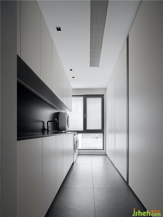 一樓的公共區(qū)域和門廳處實現了基本的功能需求,同時設置了設備間,洗衣房,豪宅設計通過干凈素雅的定制產品,把門廳的功能隱藏。廚房和設備間去掉了所有不必要的設計,創(chuàng)造出以簡約為特征的空間,“大道至簡,衍化至繁”,越樸素的設計反而越顯高貴。