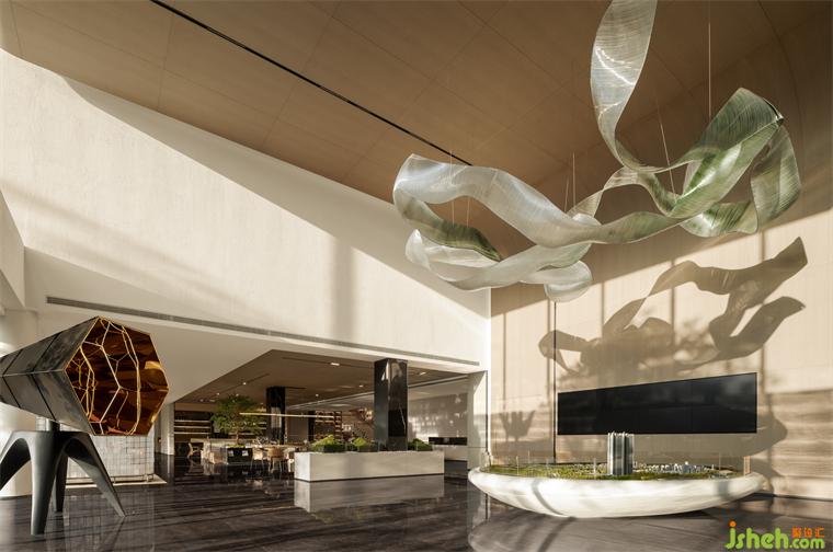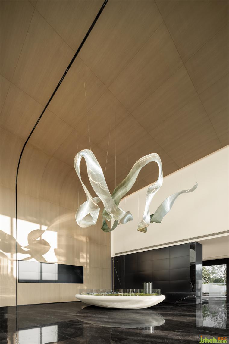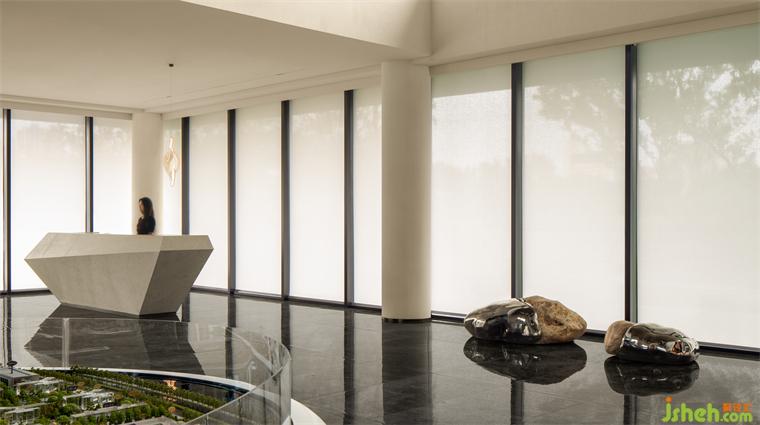 層層鱗浪隨風(fēng)而起,伴著跳躍的陽光。陽光透過屏風(fēng),懶懶地落在沙發(fā)上。營銷中心設(shè)計水波紋效果的玻璃,仿佛來到湖面,觀那遼闊的風(fēng)平浪靜,心也不知不覺沉靜下來?!办o如水,淡如山”,是一種雋永的追求。