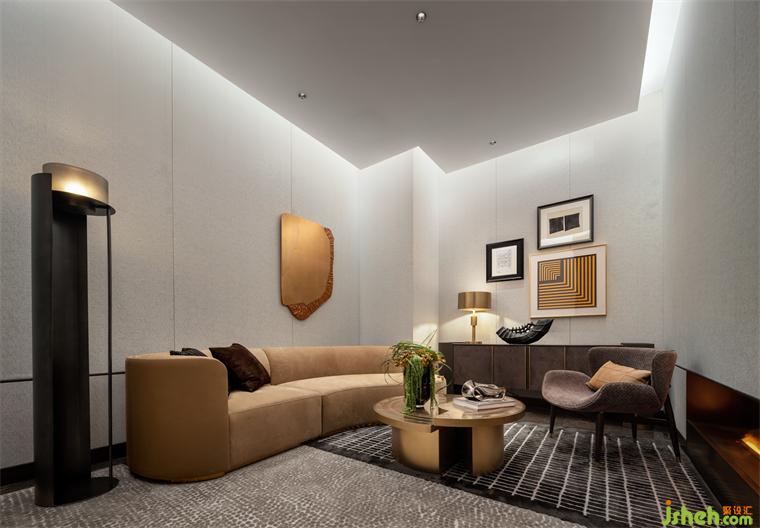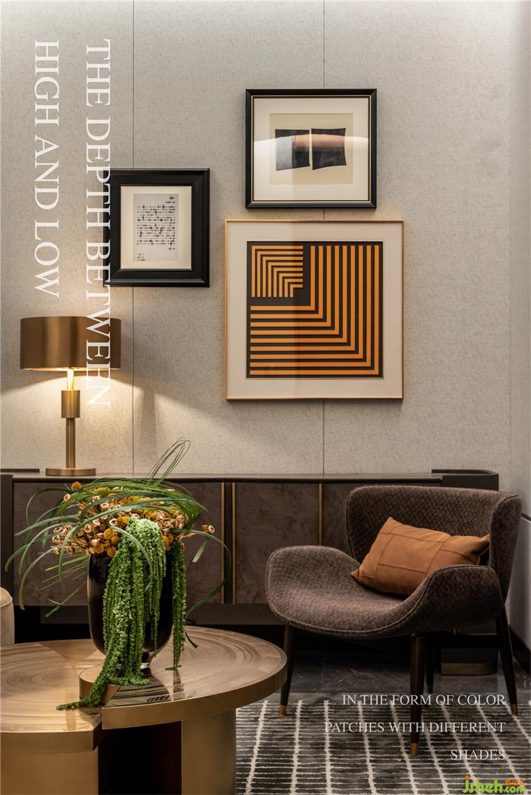 隨著步伐的移動,來到了洽談區(qū),樣板間設計獨有的趣味性藝術裝置也映入眼簾, 每一件產物都在訴說著自己背后的故事。