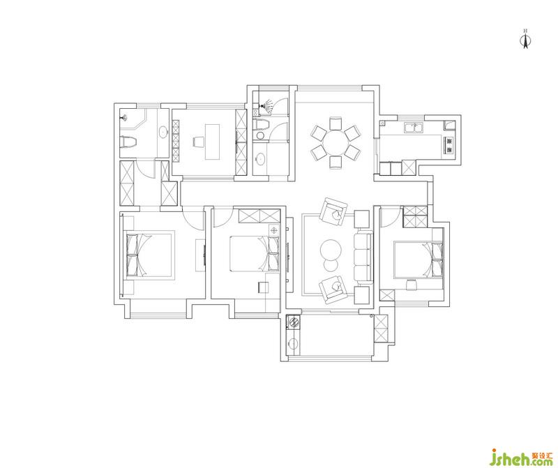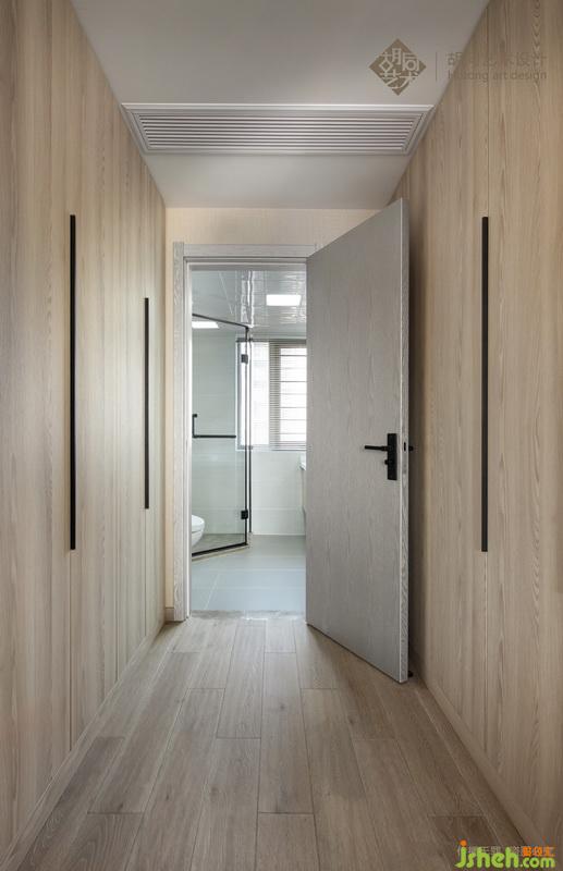 主臥的衣帽間在臥室與衛(wèi)生間的過道,增加了空間利用率也更方便。從安全和使用考慮衛(wèi)生間門做了外開。
