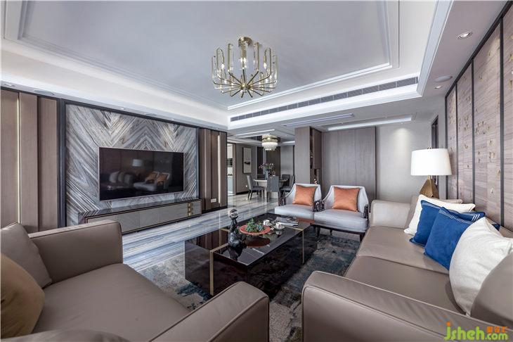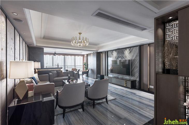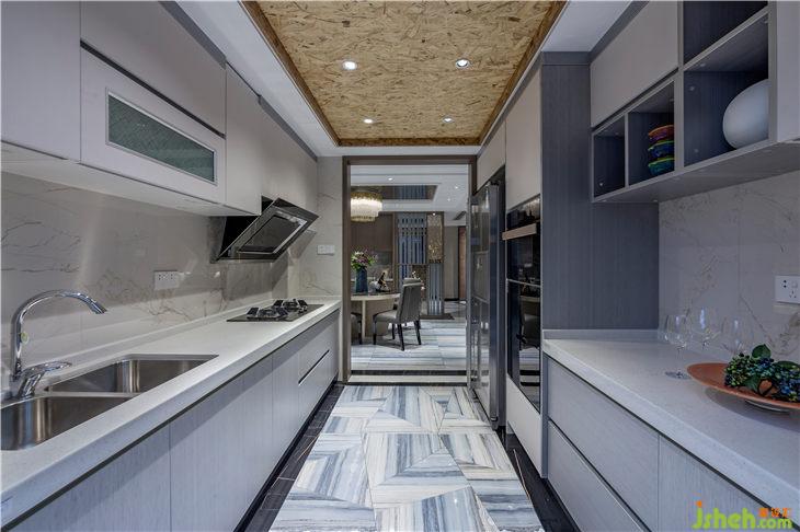 動(dòng)感跳躍的藍(lán)金沙條紋瓷磚與柔和的薰衣草木飾墻面相得益彰,互為映襯,高貴與質(zhì)感同行,而光線的照射更是活躍了整個(gè)空間。