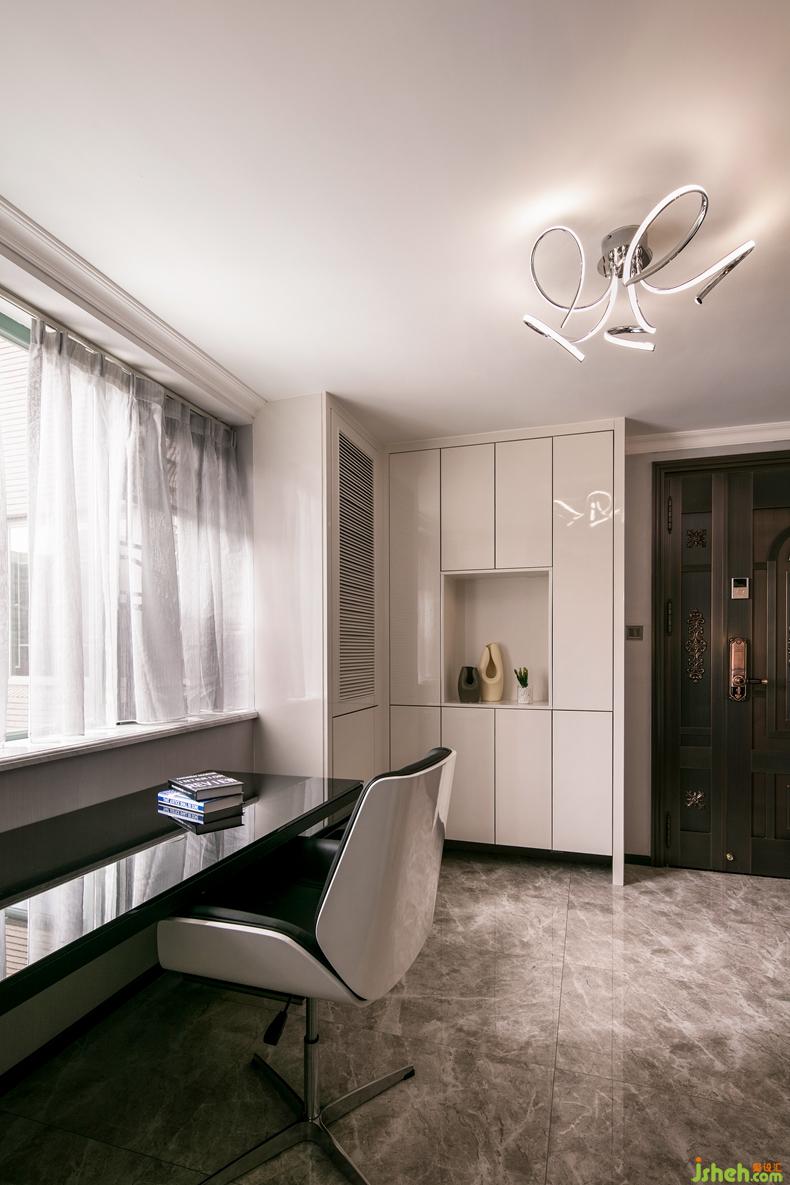 將入門的玄關(guān)空間同時劃分出閱讀工作的區(qū)域,書桌直接面向一扇接近兩米的窗戶,敞亮溫暖的陽光滲入,無疑是學(xué)習(xí)工作最好的區(qū)域,而別致線條的燈飾更是這個空間的一處亮點。