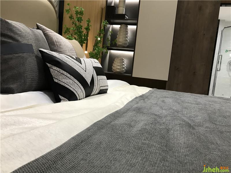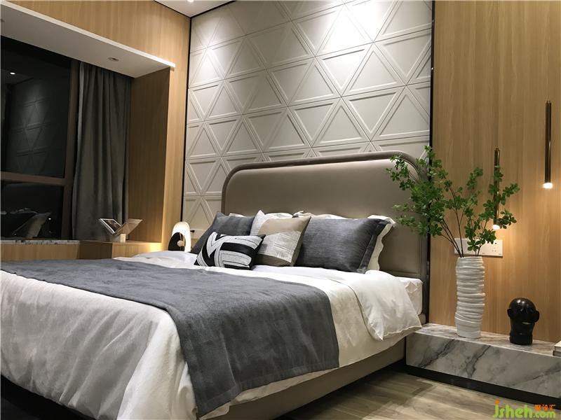 主臥依舊延續(xù)大地色系,走進(jìn)樣板房設(shè)計(jì)房間,溫柔的燈光,大地色系的墻面與地板,讓人瞬間仿佛走進(jìn)秋日。棉麻質(zhì)地的床上用品,簡單大氣,讓房間整體的色調(diào)更加溫馨與舒適。