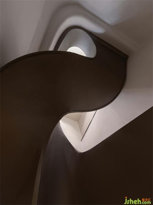 空間布局兼顧了藝術(shù)館式的自由和開放,不僅滿足了功能性的需求,更將藝術(shù)與建筑融為一體。蜿蜒而上的藝術(shù)階梯,如同一條絲帶,銷售中心設(shè)計將空間與建筑緊密地連接在一起,增強了空間的連續(xù)性和流動性,為整個室內(nèi)注入了無盡的活力。