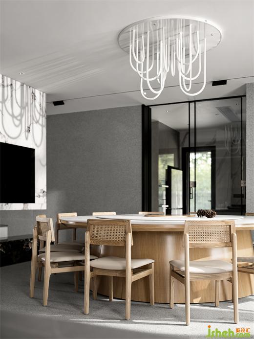 會(huì)所設(shè)計(jì)以平凡的材料構(gòu)建不平凡的空間。整體空間大量運(yùn)用素雅的天然白麻,客餐廳區(qū)沒有過多繁瑣造型,給人以平靜休憩之感。樓梯過道區(qū)造型張揚(yáng),但卻被麻石的屬性賦予空間一分含蓄,平易近人也不乏氣場(chǎng)。Build extraordinary space with ordinary materials. The overall space uses a large number of elegant natural white linen, and there is no too tedious shape in the dining room area, giving people a sense of calmness. The stairway the aisle area is full of shape, but it is given a subtlety space by the attributes of Mashi, and it is also easy to be in the field.