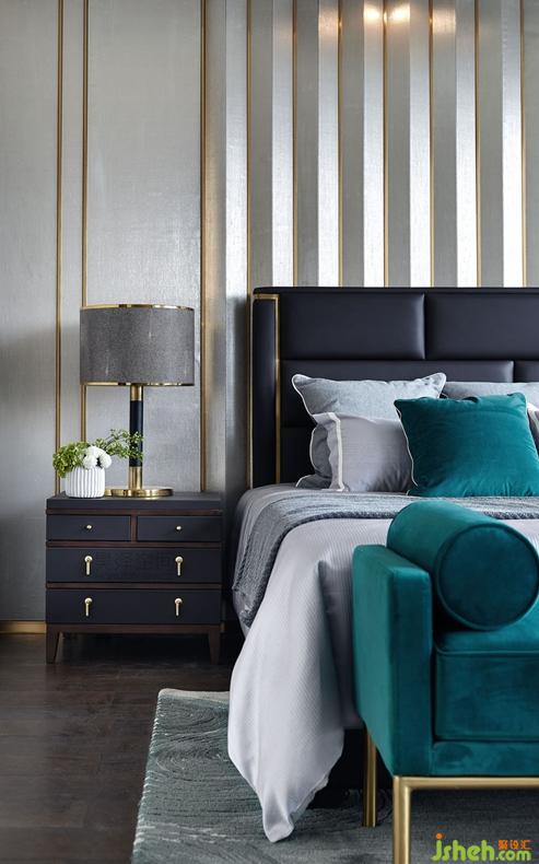 三層主臥室打破書(shū)房和臥室的界限,使得整個(gè)空間變得通透寬敞。床背景墻是米白的和咖啡色兩款墻布豎向嵌銅金屬線條造型,簡(jiǎn)約又時(shí)尚。亮金屬和黑白根大理石巧妙結(jié)合的書(shū)桌,既時(shí)尚又穩(wěn)重。鋼琴漆面的科定木飾面與厚金屬夾絲玻璃的完美邂逅,造就了書(shū)柜不俗的檔次。或許在枕邊讀一本書(shū),也可在臥室臨時(shí)辦公,符合年輕業(yè)主的現(xiàn)代化生活方式。