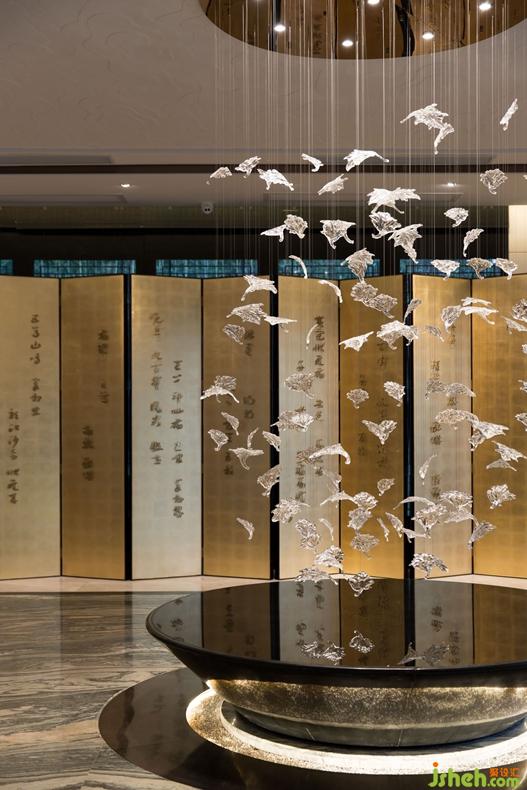 穿過前廳,往右來到企業(yè)文化展示區(qū),金箔屏風(fēng)訴說著指點江山的激昂文字,屏前的水晶燈飾編織著一個奇幻的美夢。