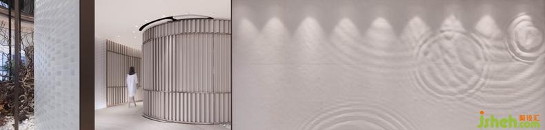 整個平面及空間采用仿生學(xué)設(shè)計,模仿雨滴漣漪的自然現(xiàn)象營造出圓潤、相互交融的充滿意趣的空間形式,同時也將平面的形式運用到門牌標識系統(tǒng)的設(shè)計中。