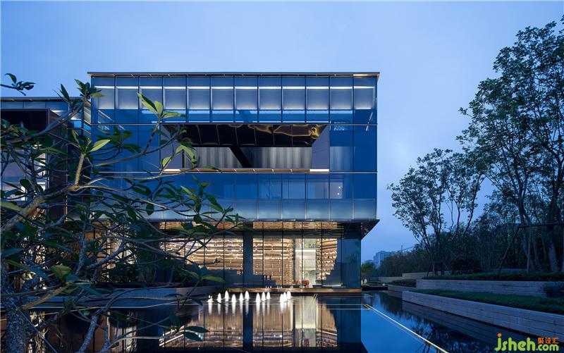 遠(yuǎn)遠(yuǎn)望去,外建筑仿佛懸浮于城市中的玻璃盒子,輕盈且充滿當(dāng)代藝術(shù)氣質(zhì);主入口兩側(cè)是為本案專屬設(shè)計(jì)的櫥窗展示,一側(cè)是充滿未來感的階梯圖書館透景,另一側(cè)是展示長樂海上絲綢之路的歷史印象索引。