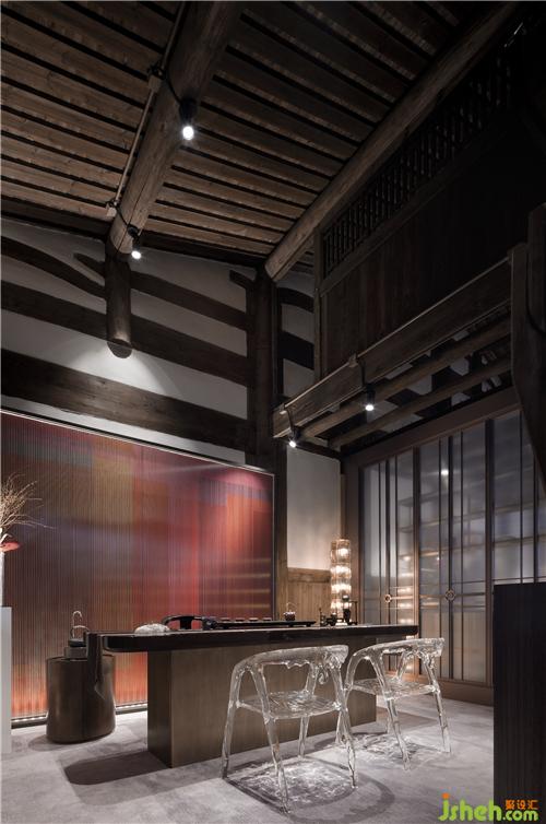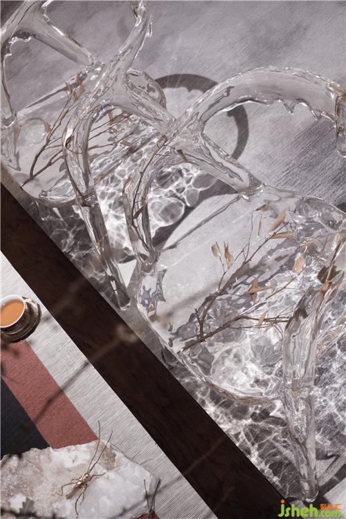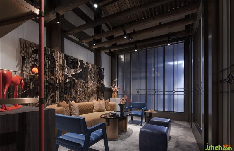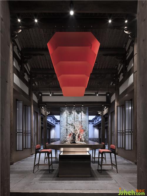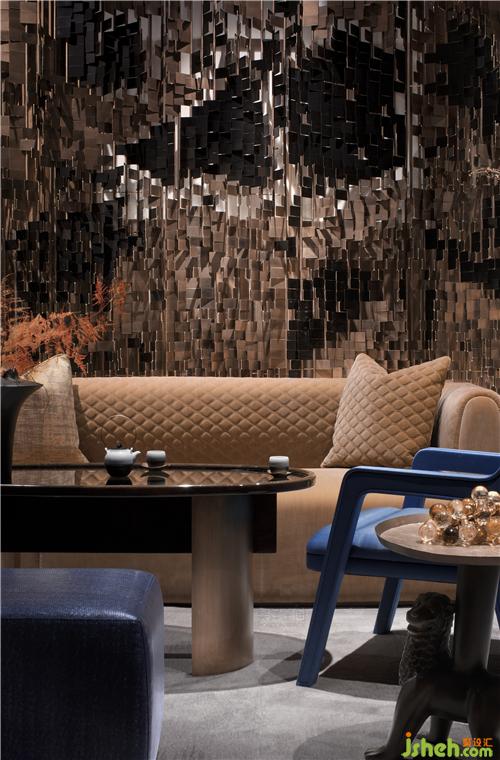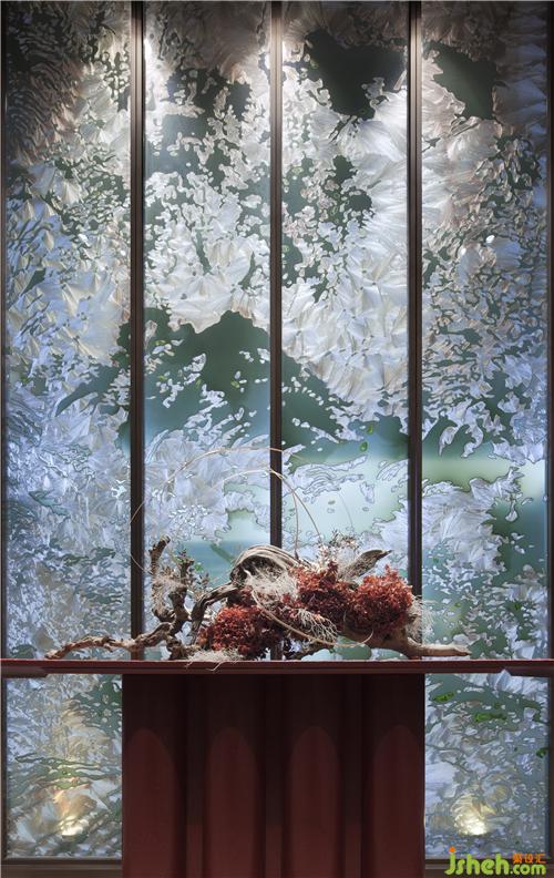 主樓前天井的端景處是以“千里江山圖”為原型的琉璃琺瑯屏風(fēng),瀕臨失傳的傳統(tǒng)工藝在這里被重新重視挖掘,琉璃琺瑯工藝融合了國際設(shè)計(jì)視野與當(dāng)代美學(xué),東方繪畫中的藝術(shù)審美, 通過新的方式重現(xiàn)古畫,富有更當(dāng)代的藝術(shù)表現(xiàn)力。