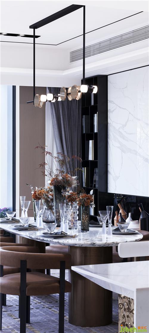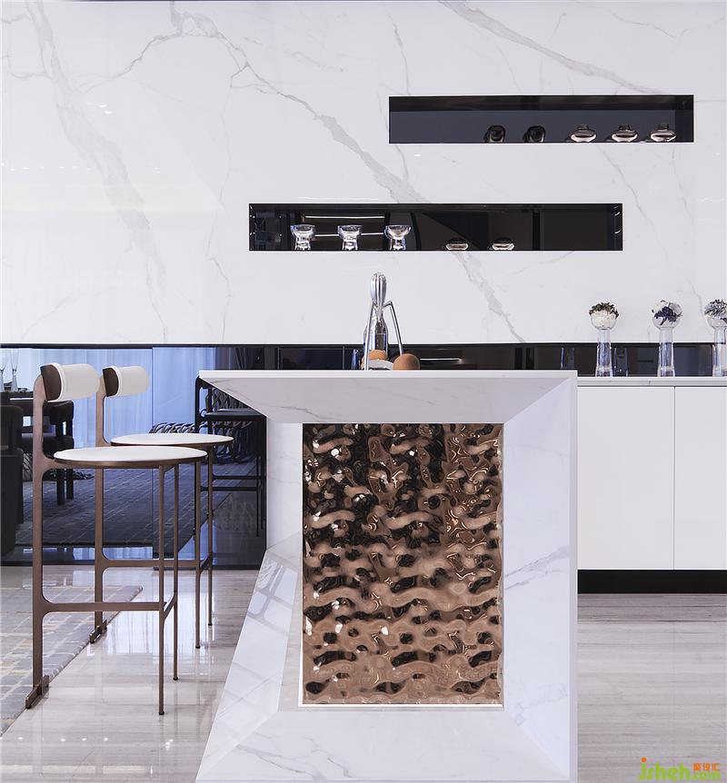 一層開敞的空間同時容納了客廳、餐廳及西廚的功能,開放的交互關(guān)系增進了情感交流,這種愉悅的空間氛圍如同譜寫樂章,在美感的引導(dǎo)下,把偶然的事件變成一個主題,然后記錄在生命的樂章中。猶如作曲家譜寫奏鳴曲的主旋律,人生的主題也在反復(fù)出現(xiàn)、重演、修正、延展。