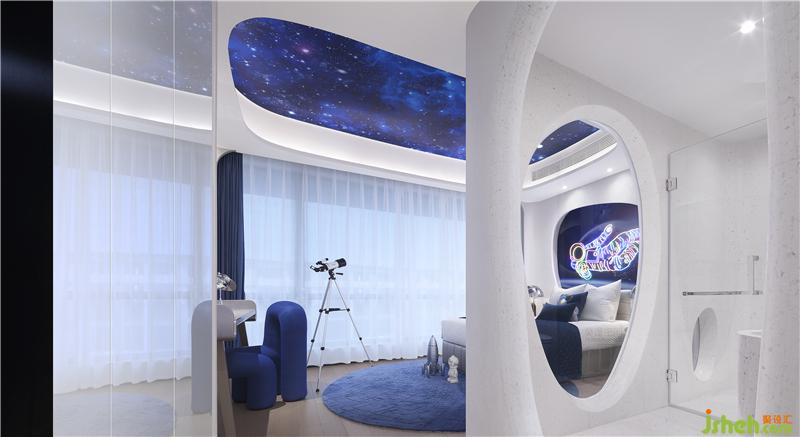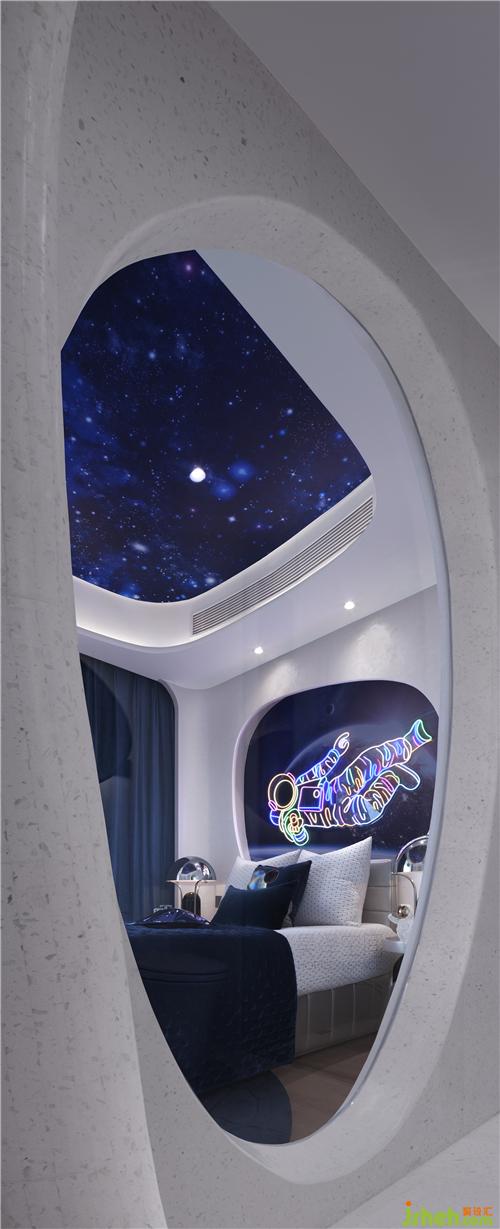 當(dāng)你抬頭仰望星空,夜的寂靜,像一盞孤燈,將銀河的星輝點(diǎn)燃。讓我們?cè)O(shè)想,在那些星星之中,有一顆引領(lǐng)我們的生命穿過(guò)未知的黑暗。太空總是引人遐想,將太空艙的造型融入到整體空間的設(shè)計(jì)中,通過(guò)不同的透景方式及聲光電的運(yùn)用,增強(qiáng)互動(dòng)和趣味性體驗(yàn)。